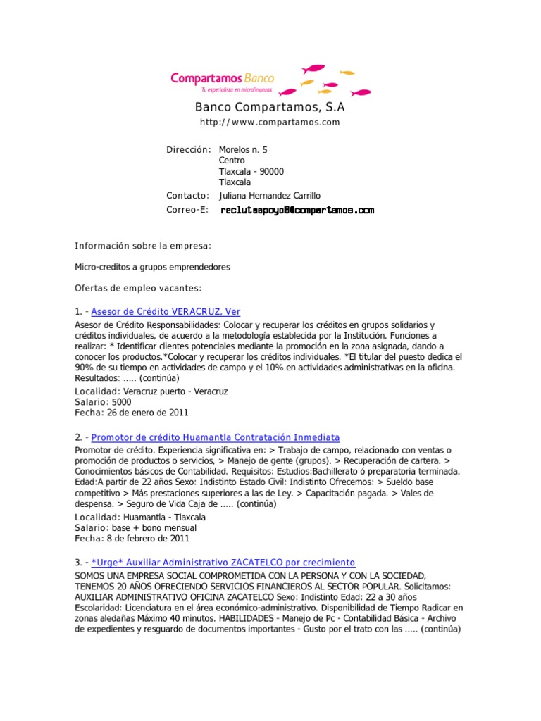 Compartamos Banco tiene vacantes disponibles para personal con o sin experiencia | Trabajo Adicto