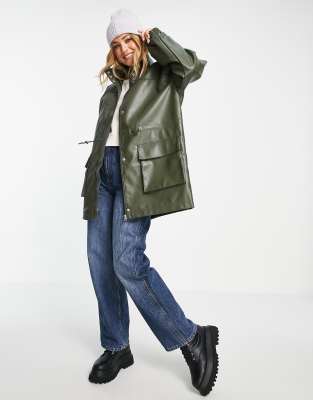 Parka verde oliva efecto cuero de ASOS DESIGN | ASOS